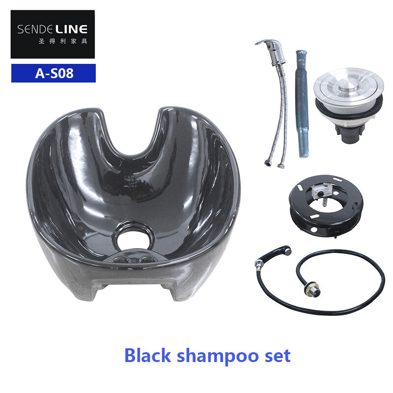 طبق الشامبو هذا مصنوع من السيراميك. إنه راقٍ للغاية. يتم ضبط ارتفاع كرسي الحلاقة بواسطة مضخة زيت هيدروليكية. في الظروف العادية، يمكن للحلاق ضبط ارتفاع كرسي الحلاقة بشكل تعسفي عن طريق الدوس على إطار القدم، ويمكن تعديل مسند الظهر الآخر.